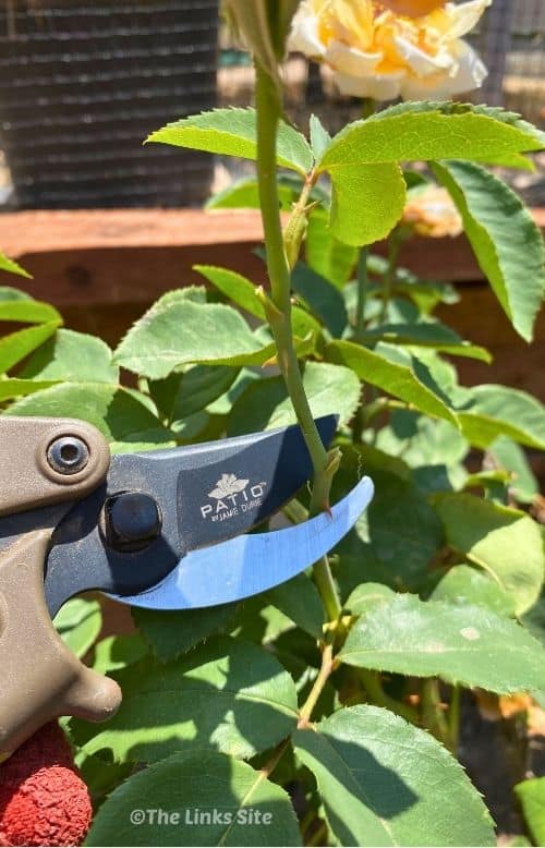 Learning how to prune roses sounds complicated, but it’s really not. I’ve been pruning ours for quite a few years now, and each year I get more confident. The more you experiment, the more you’ll learn how much each rose bush needs and what shape suits it best.
